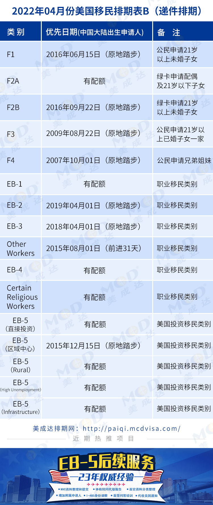 2022年5月份美国移民排期更新!此次排期表EB-5类别有了重大更新